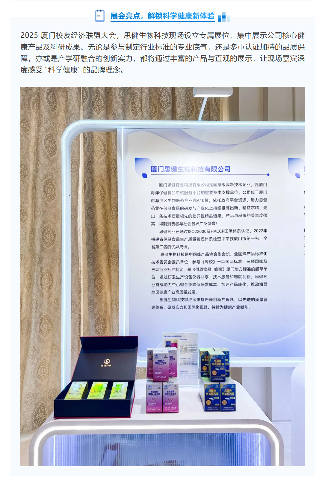 校友经济聚力,健康科技同行!思健生物科技受邀参展 2025 厦门校友经济联盟大会,解锁科学健康新体验