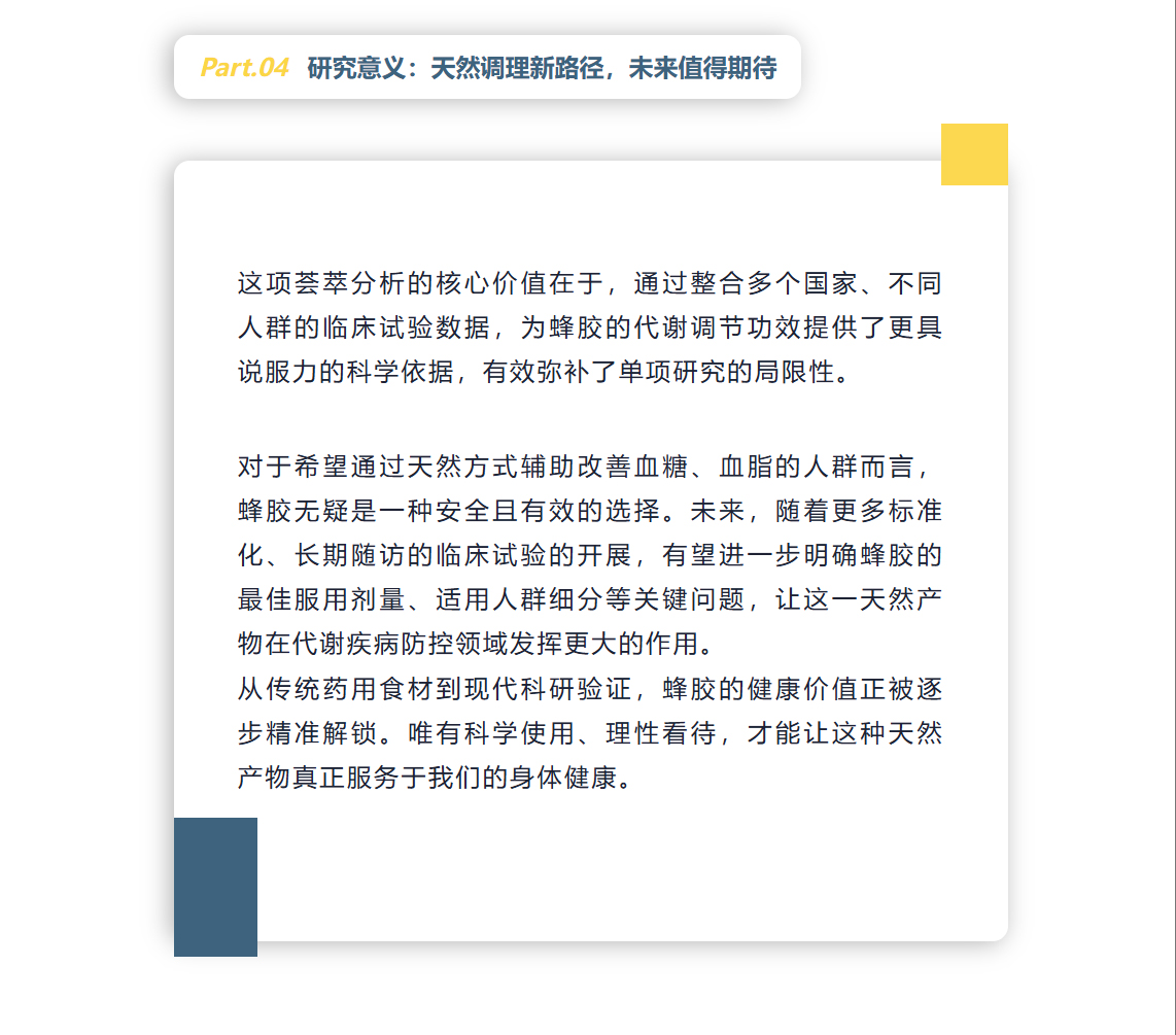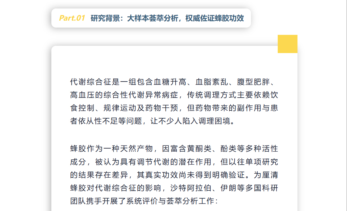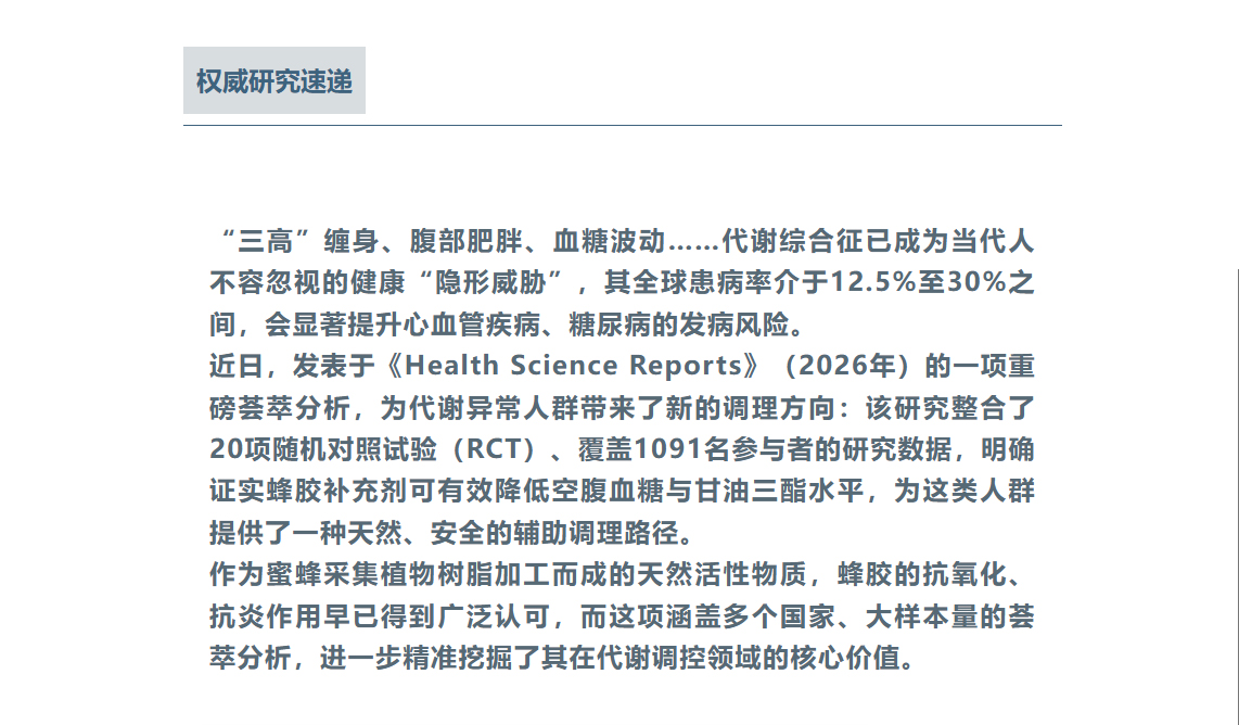 蜂胶科研再出新成果!20 项临床试验证实调控血糖血脂精准,代谢综合征人群新福音
